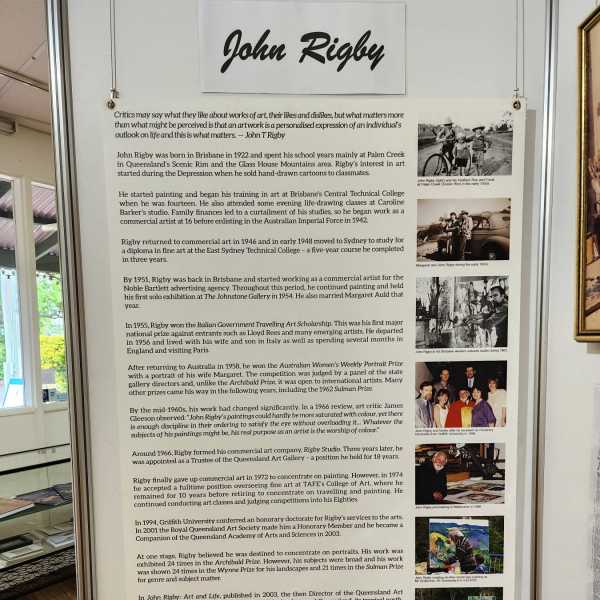 There have been a couple of Rigby retrospectives organised by the family including one at RQAS in 2022 and one showing work by Rigby and Roggenkamp on the Sunshine Coast in 2023.